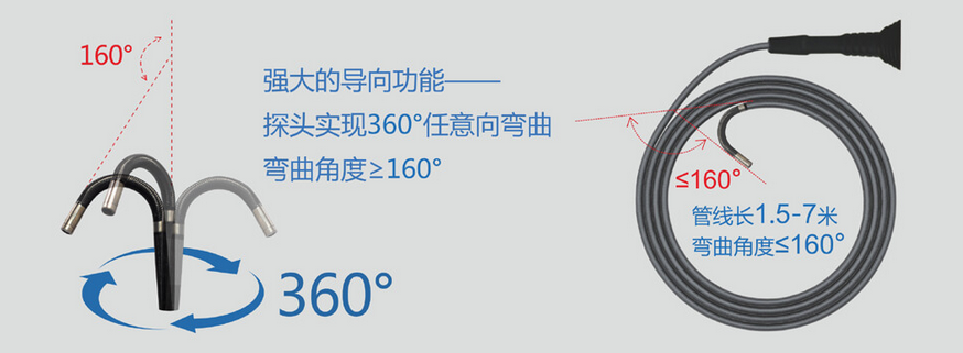 C50電控高清工業內窺鏡運用長距離信號傳輸及導向傳動技術,支持插入管7米,并且轉角可達120°,這一技術突破可以充分運用在管道、集箱或大型設備中。
