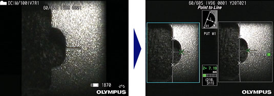 我們的立體測量技術提供了從不同角度的缺陷測量簡單操作。新采用的屏幕切換功能可以輕松就快速切換單獨的缺陷檢測畫面到測量畫面。